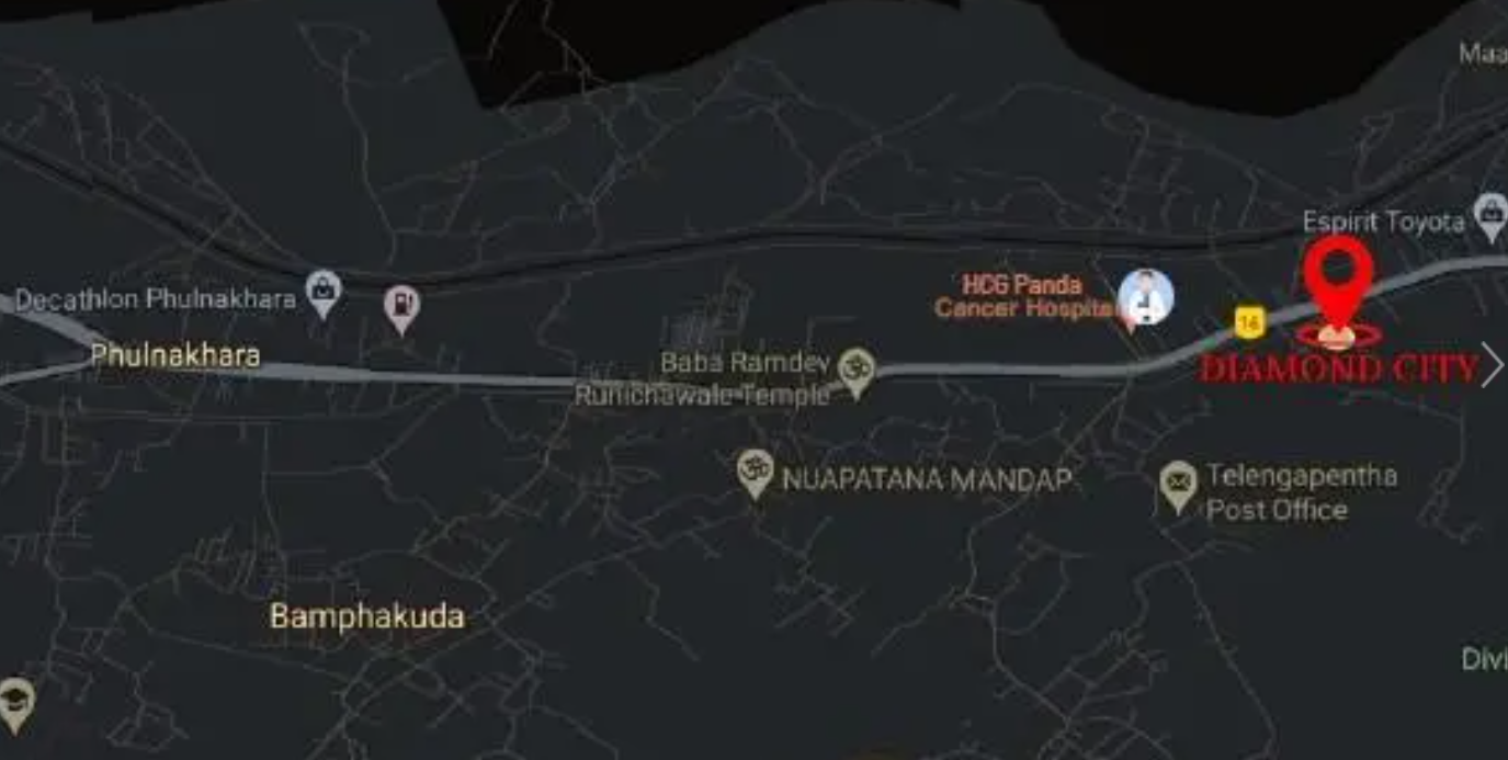 Diamond City is located in Phulnakhara, offering seamless connectivity to both Bhubaneswar and Cuttack